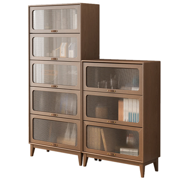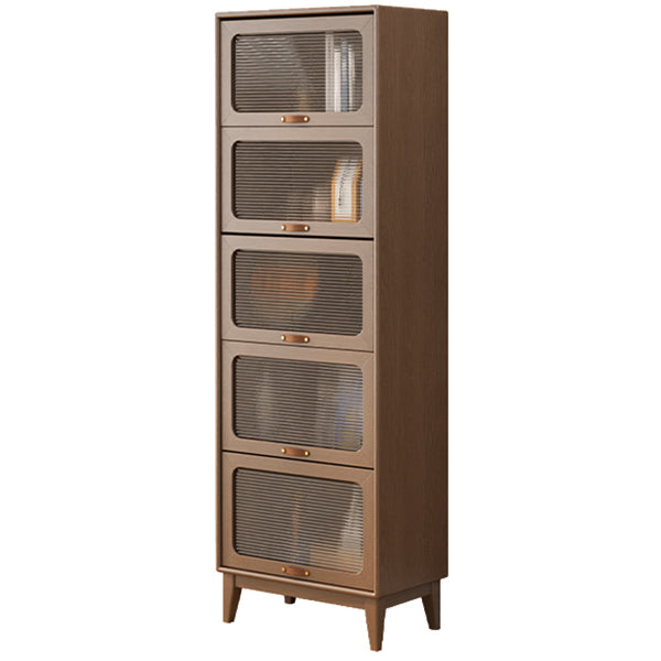 Mid-Century Modern Glass Paned Cabinet, Solid Wood Accent Cabinet