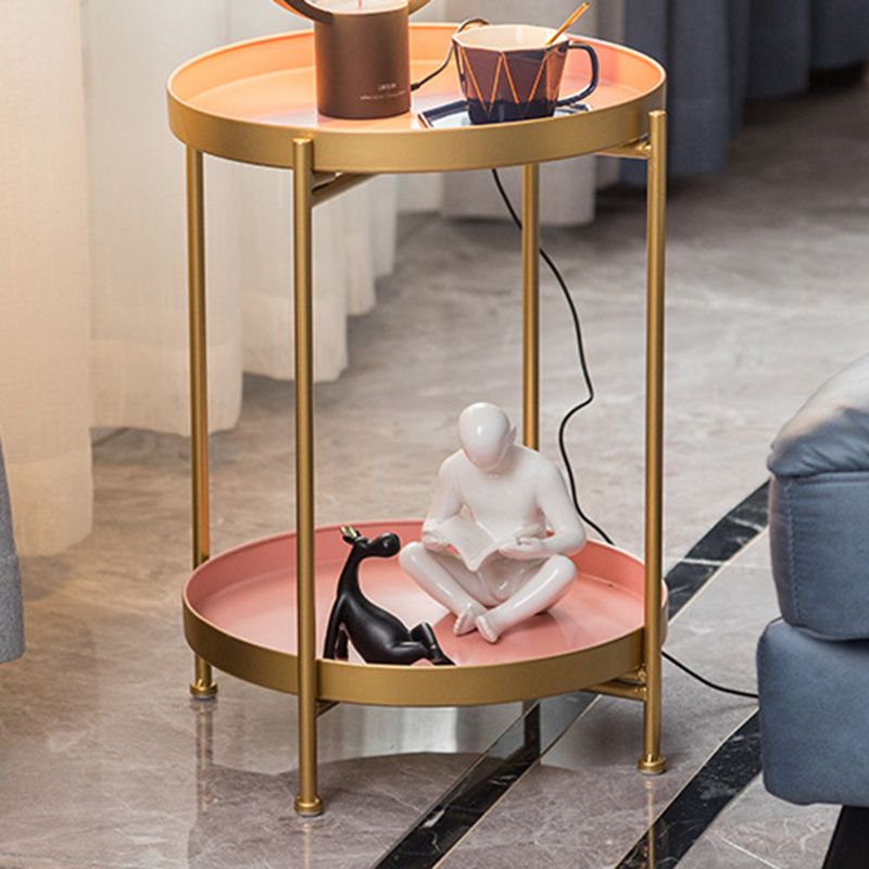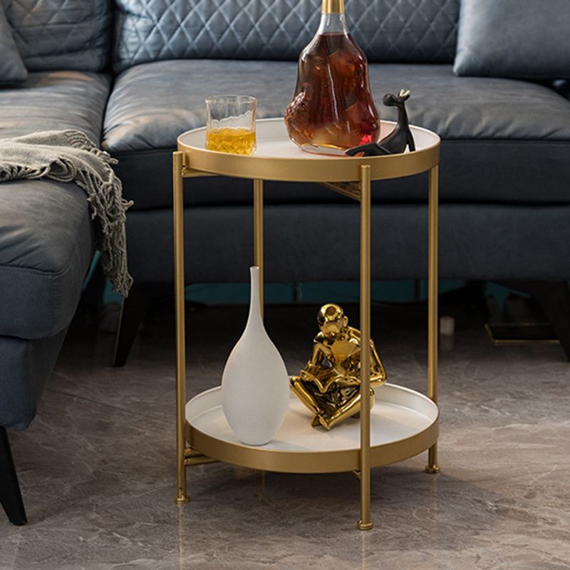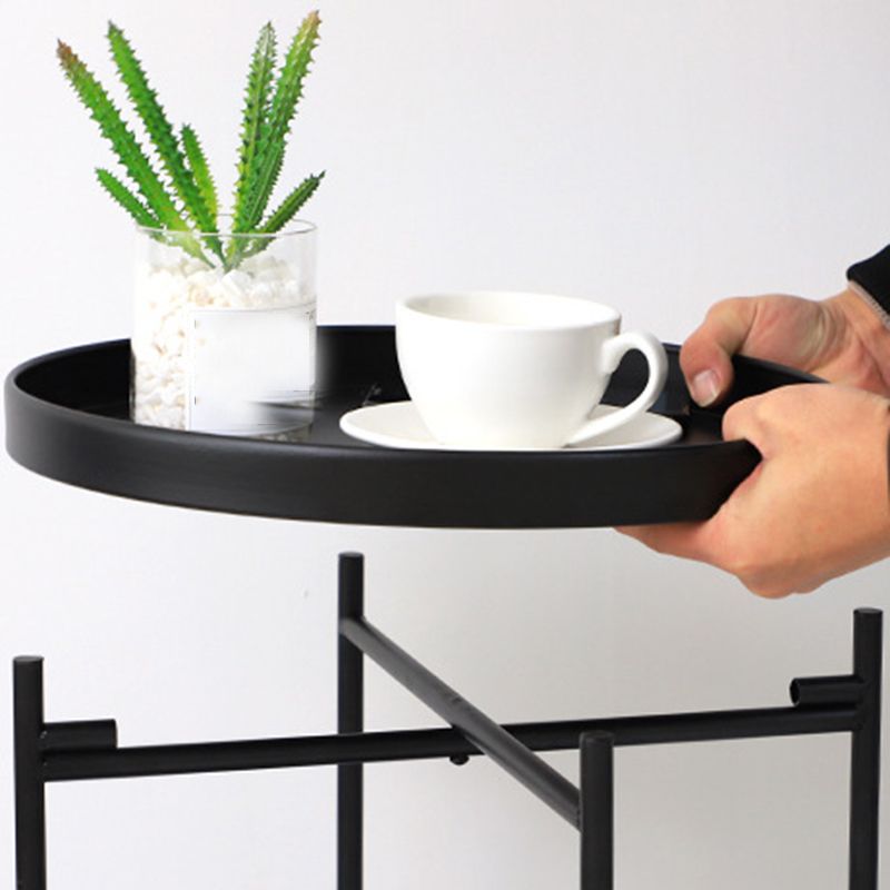 Mid-Century Tray Top End Table 20.3" Tall Iron Round Side Table with Shelf