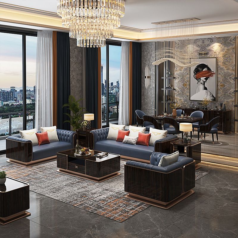 Modern Genuine Leather Sofa 29.52" High Pillow Top Arm Sofa