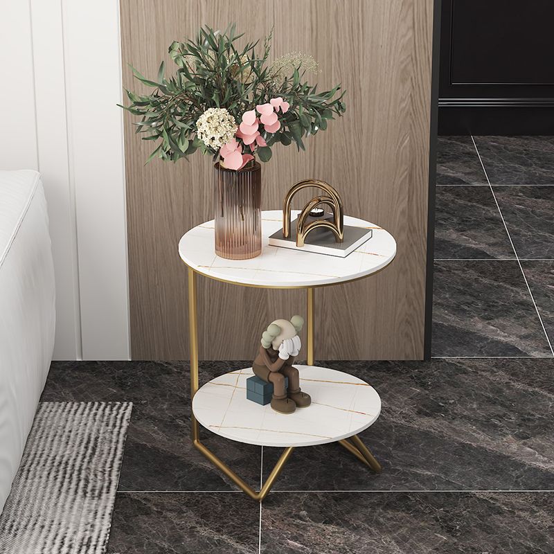 Modern Metal C Side Table Round Slate Side End Table with Shelf