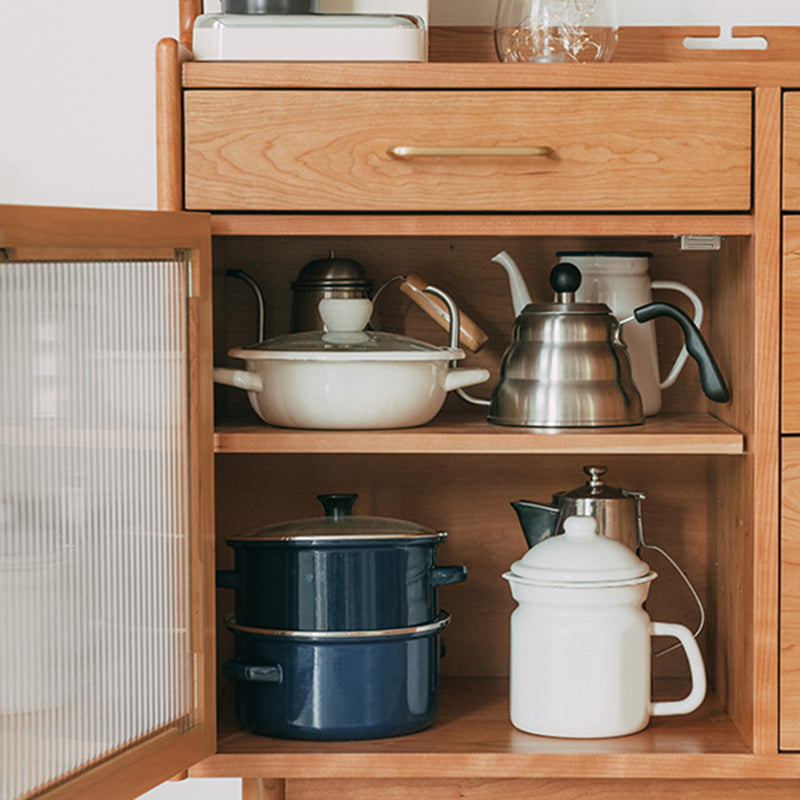 Modern Pine Dining Hutch Glass Doors Hutch Buffet for Dining Room