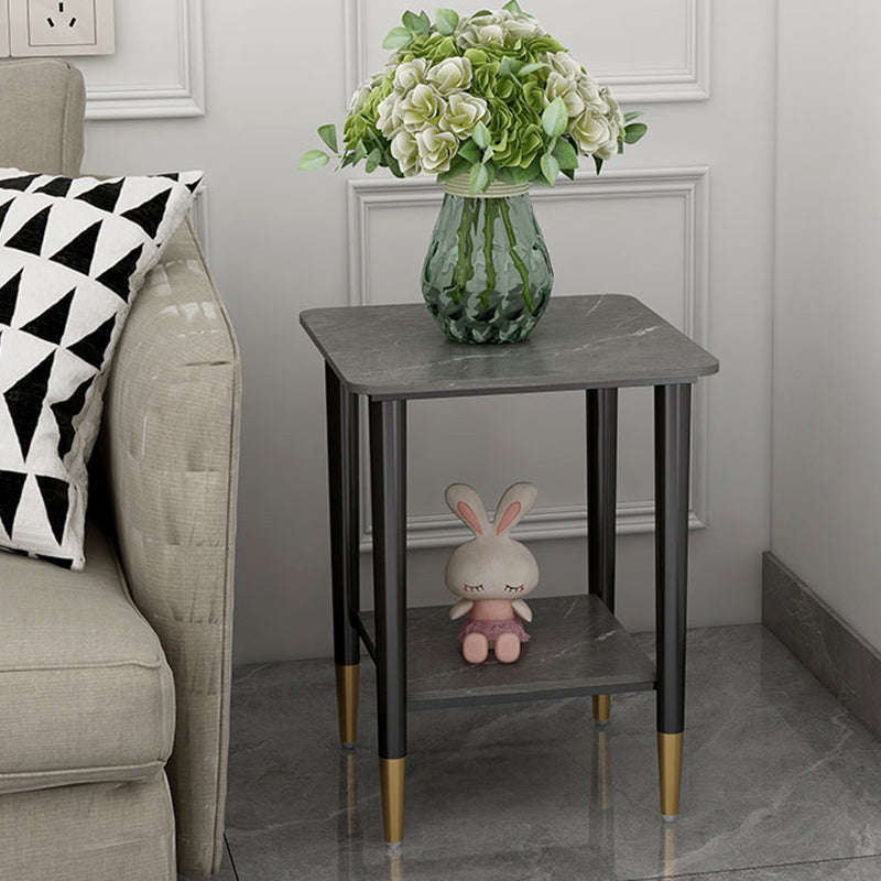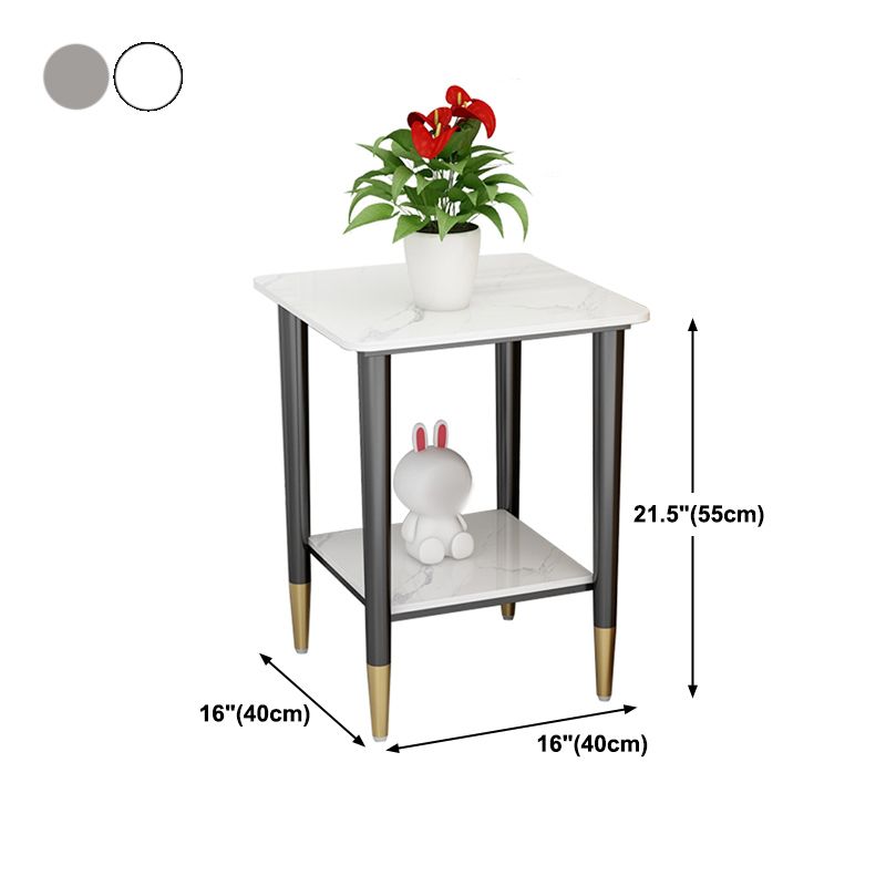 Modern Stone Top Nightstand 1-Shelf 22" H Metal Open Storage Bed Nightstand