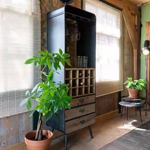 Modern Style Floor Wine Rack Wooden Wine Bottle & Glass Rack without Light