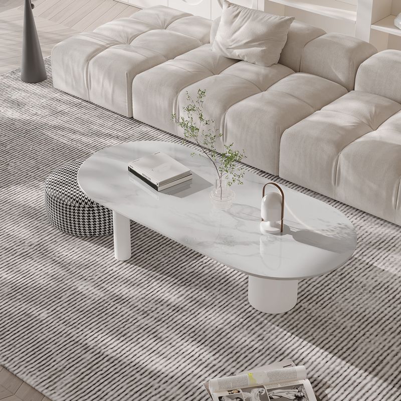 Modern Style White/Black Rock Slab Top Iron Craft Round Coffee Table