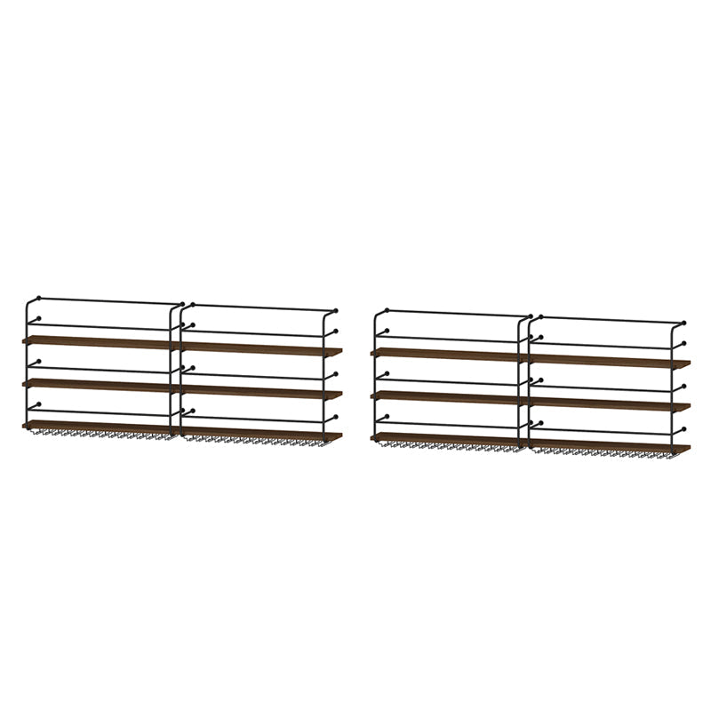 Modern Style Wood and Iron Wall Mounted Wine Rack with Light in Black