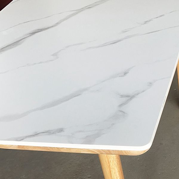 Modern White Rectangle Stone Dining Table with Solid Wood Legs
