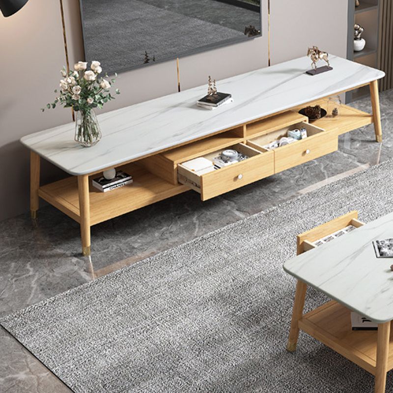 Modern Wood TV Media Stand 12" W Open Shelving TV Stand with Splayed Legs