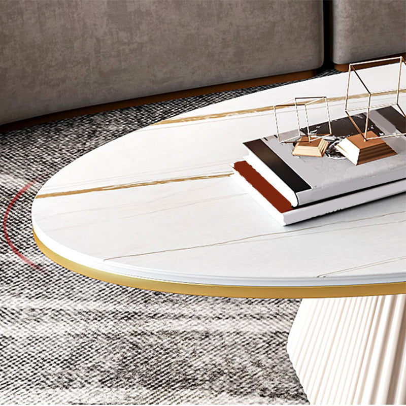 Oval Box Shaped Base Design Slate Table Glam Style Coffee Table