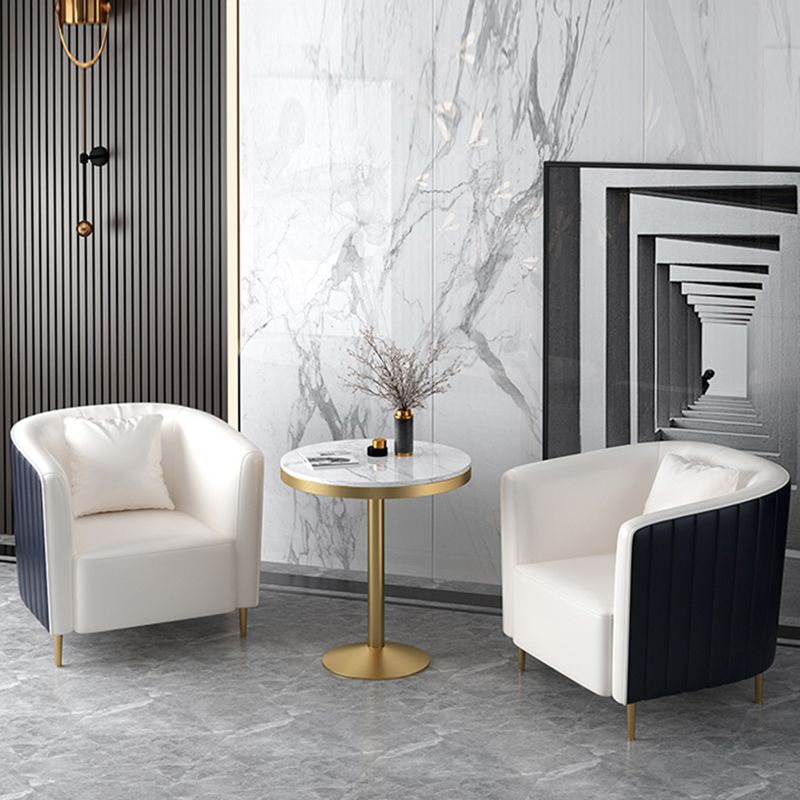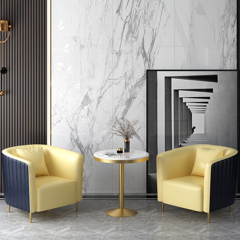 Pillow Back Arms Included Chair Gold Four Legs Barrel Accent Chair