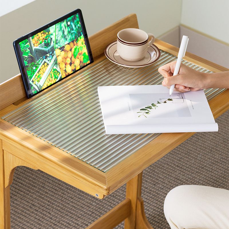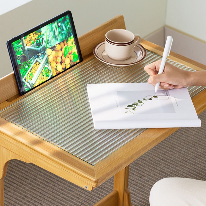 Rectangular Glass Top Side Table Wood Sofa Side Accent Table