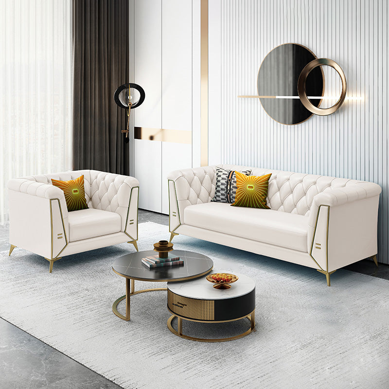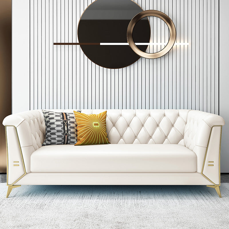 Solid Color Faux Leather Sofa 28.34" Wide Tufted Back Tuxedo Arm Sofa