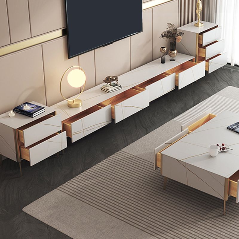 Stone Media Console TV Stand Contemporary TV Stand with Drawers