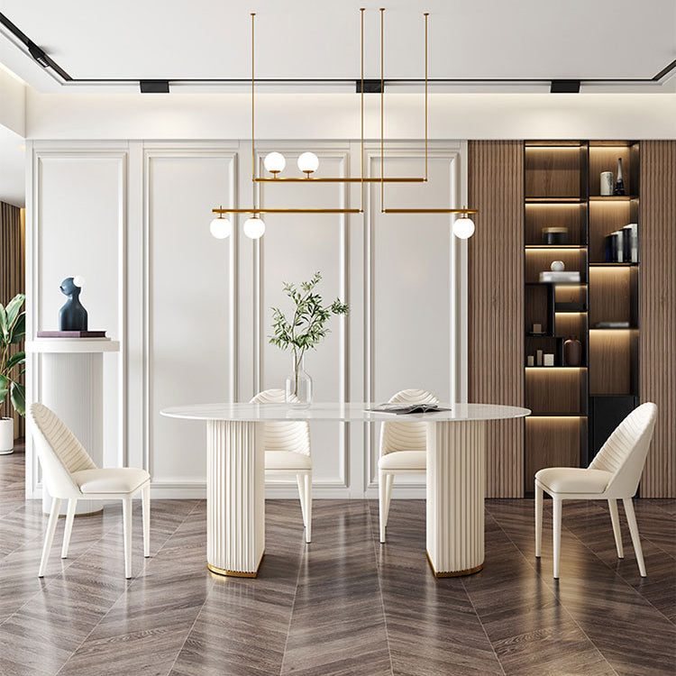 Traditional Luxury Dining Table White Stone Oval Dining Table for Kitchen