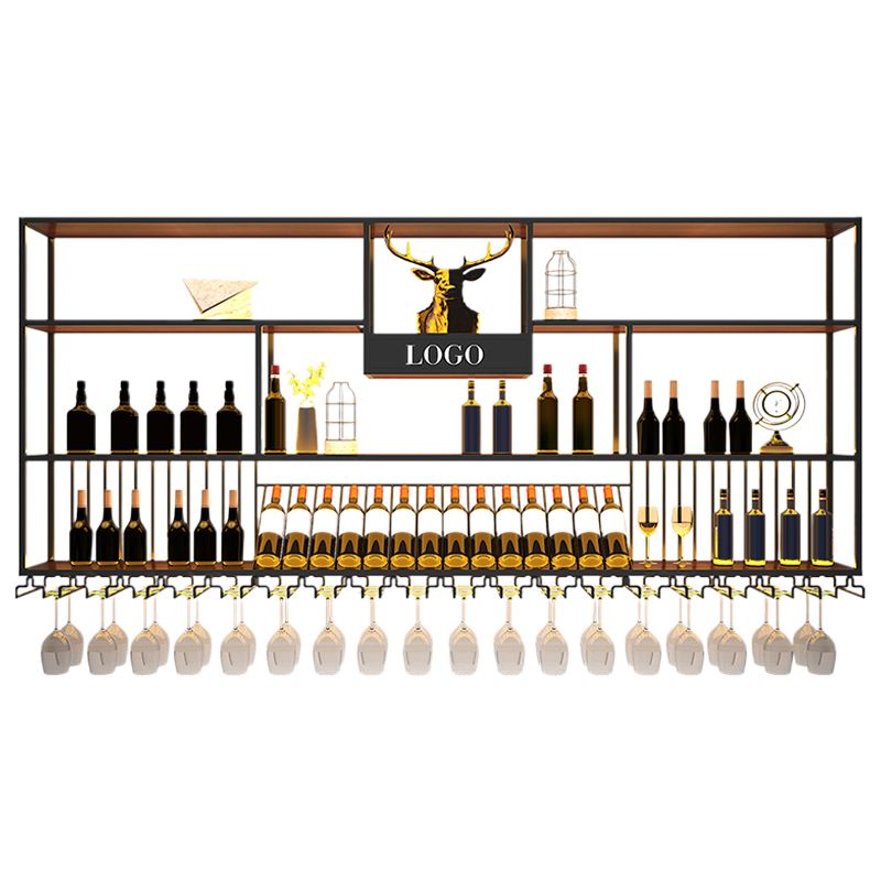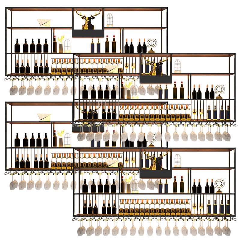 Wall Mounted Wine Rack Kit Metal and Wood Wine Holder Rack in Black and Brown