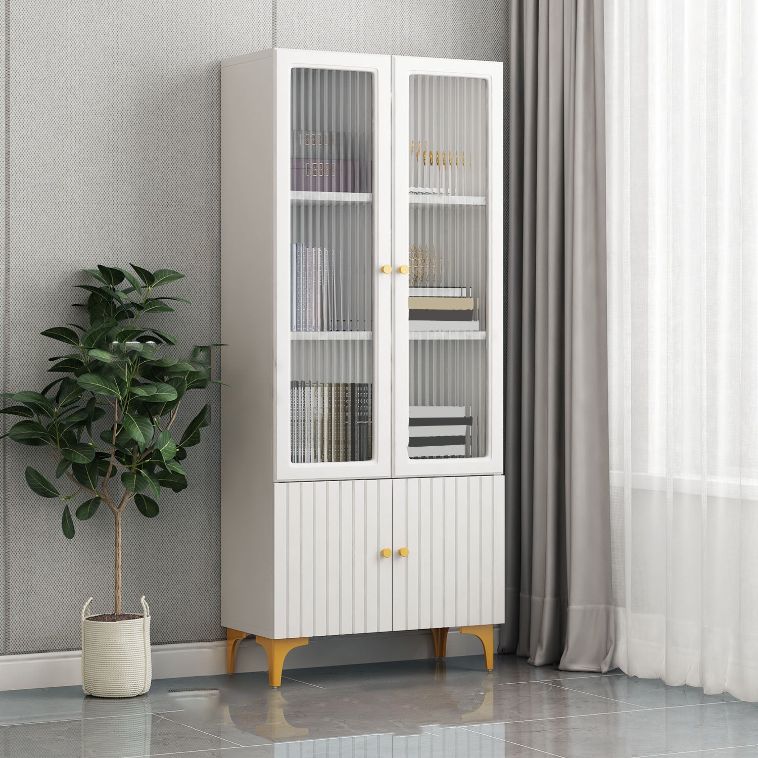 White and Black Accent Cabinet Glass Paned Storage Cabinet with Doors