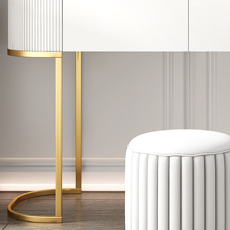 White Vanity Straight Feet Desk Stone Top Dressing Table Stool Set