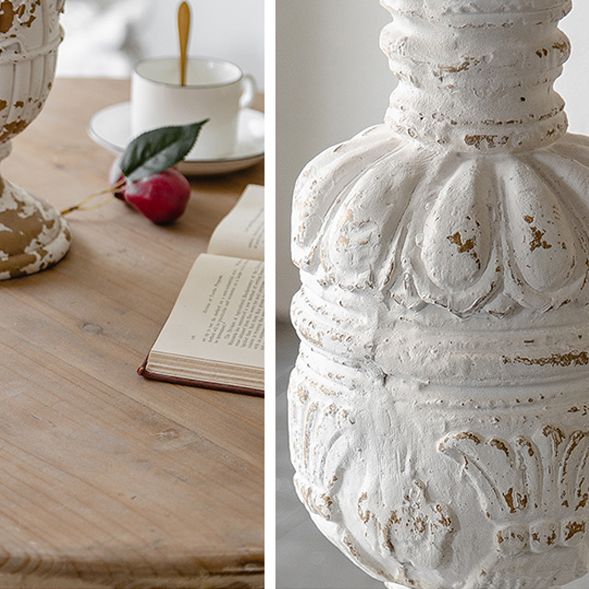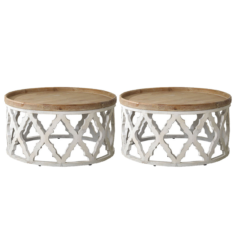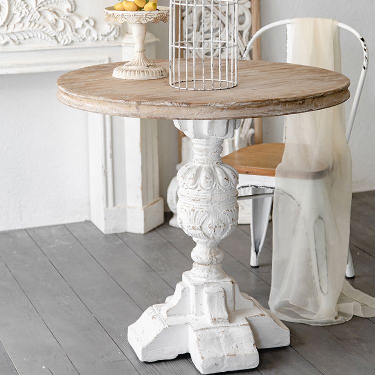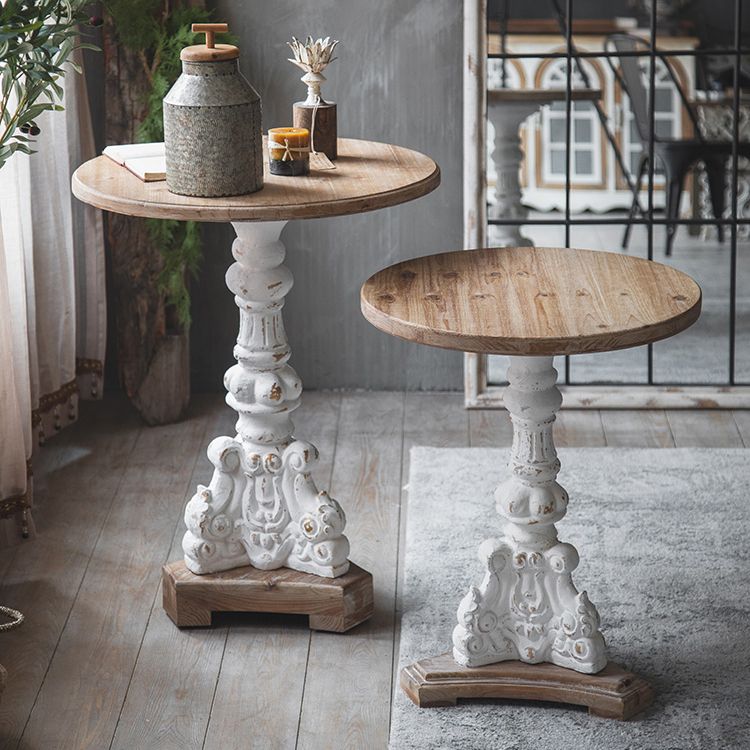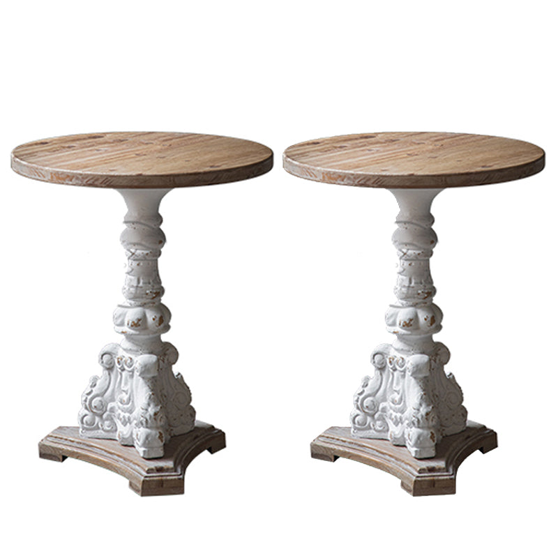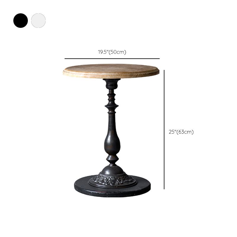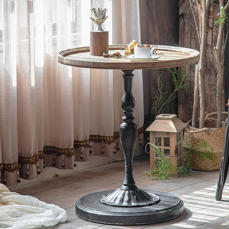 Wood Round Top Side Table Metal Base End Table - Distressed Surface Treatment