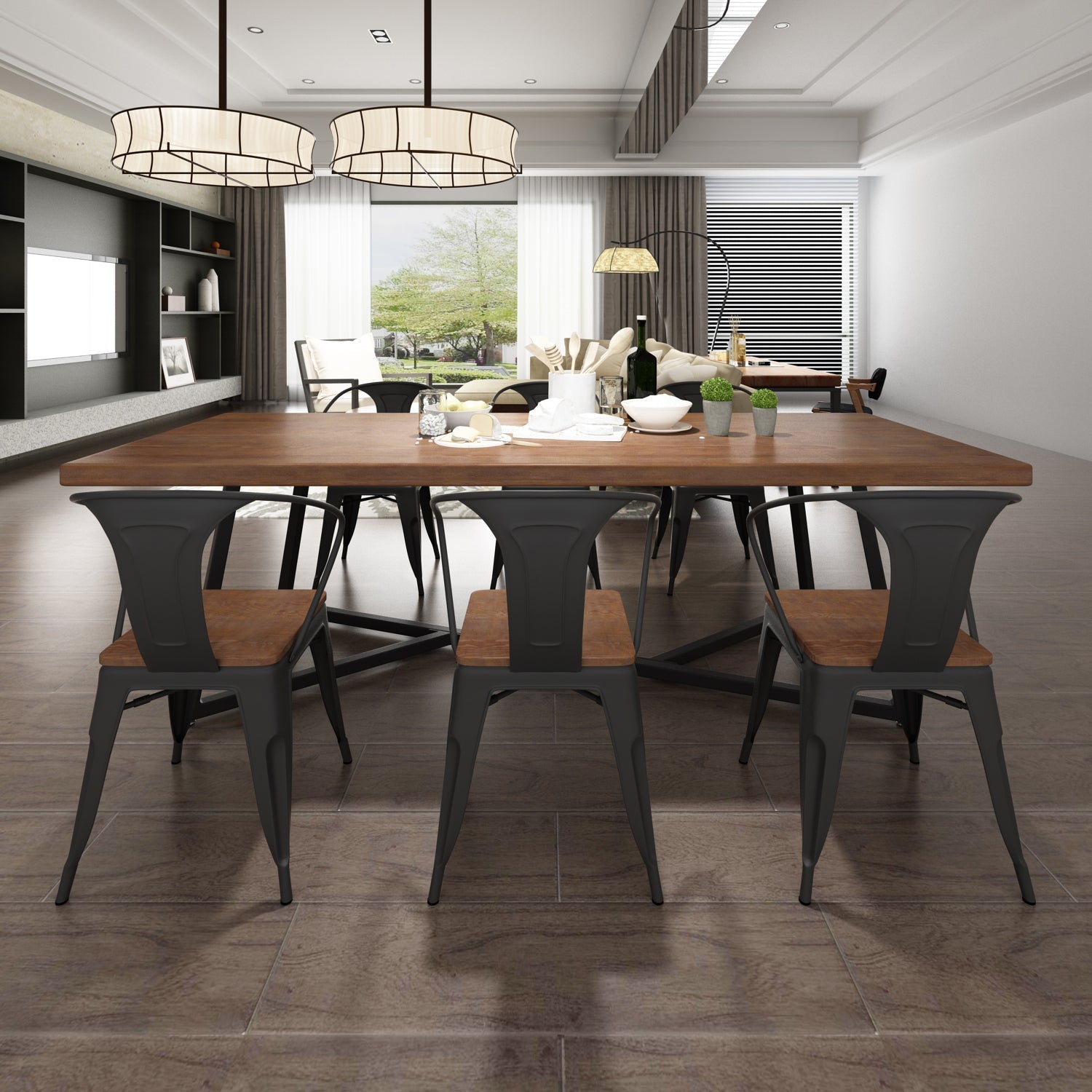 1/7 Pieces Rectangular Dining Table Set Industrial Style Wooden Home Table Chairs