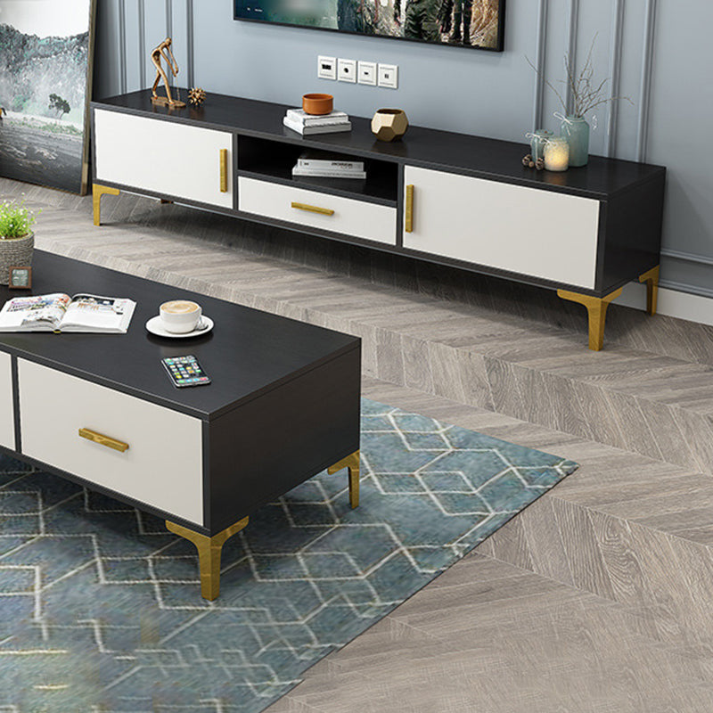 1 Drawer Contemporary TV Cabinet Faux Wood TV Stand with 2 Doors