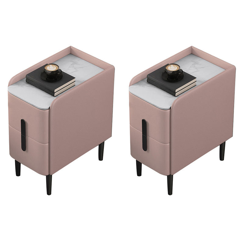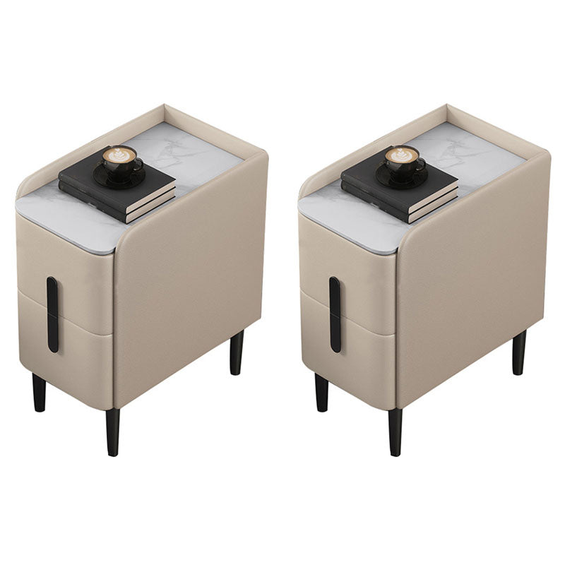 2 Drawers Contemporary Accent Table Nightstand Antique Finish Bed Nightstand with Legs