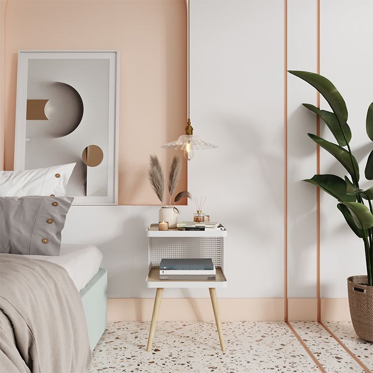 20" H Accent Table Nightstand Pearl Wood and Metal Night Table Lower Shelf