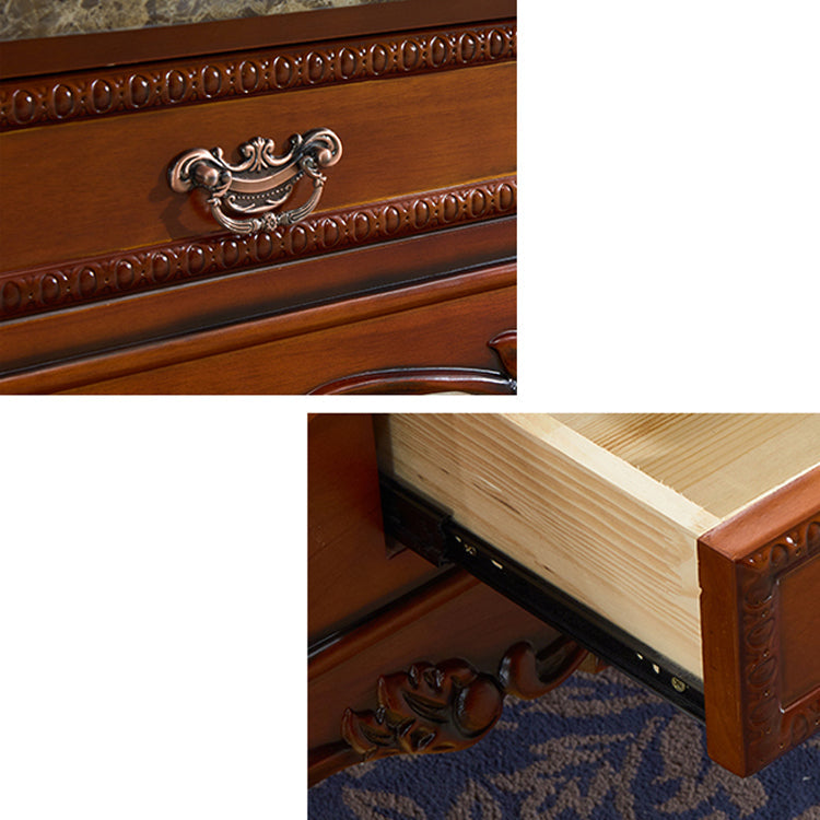 Brown Traditional Style TV Stand Oak Wood TV Cabinet with 2 Drawers