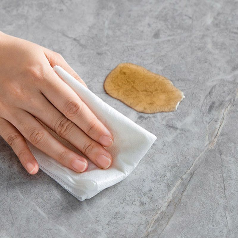 Contemporary Gray Round Stone Dining Table with 4 Wooden Foot