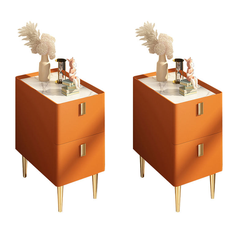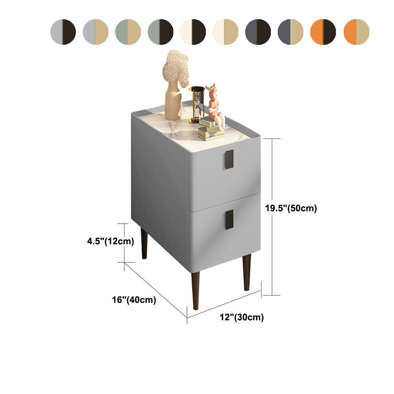 Contemporary Solid Wood Nightstand 2-Drawer Stone Top Night Table