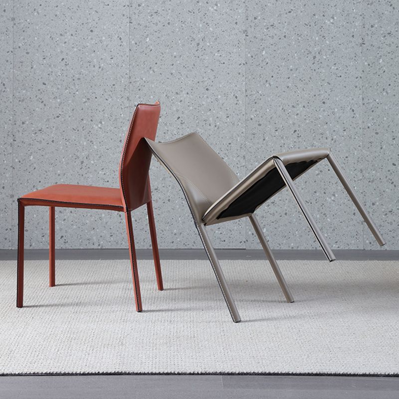 Designer Style Home Solid Back Dining Chair Matte Finish Leather Side Chair