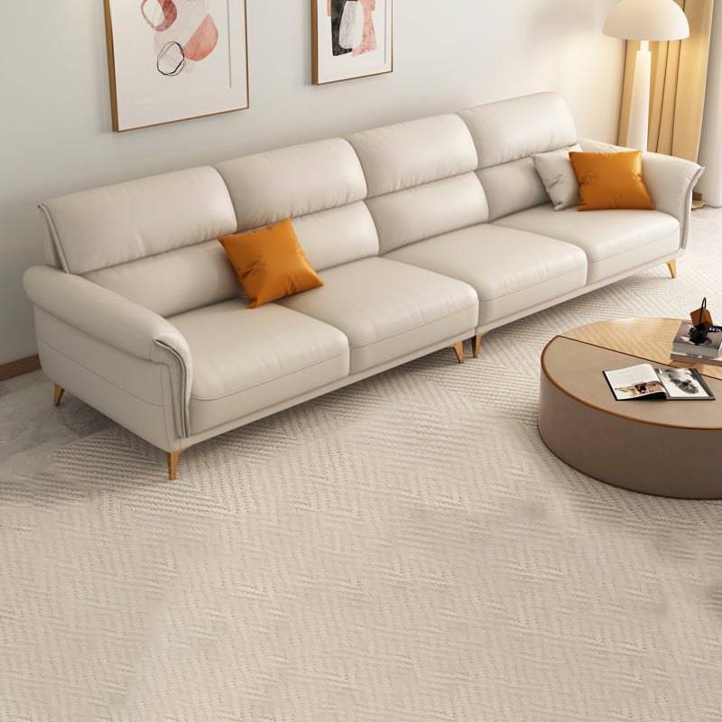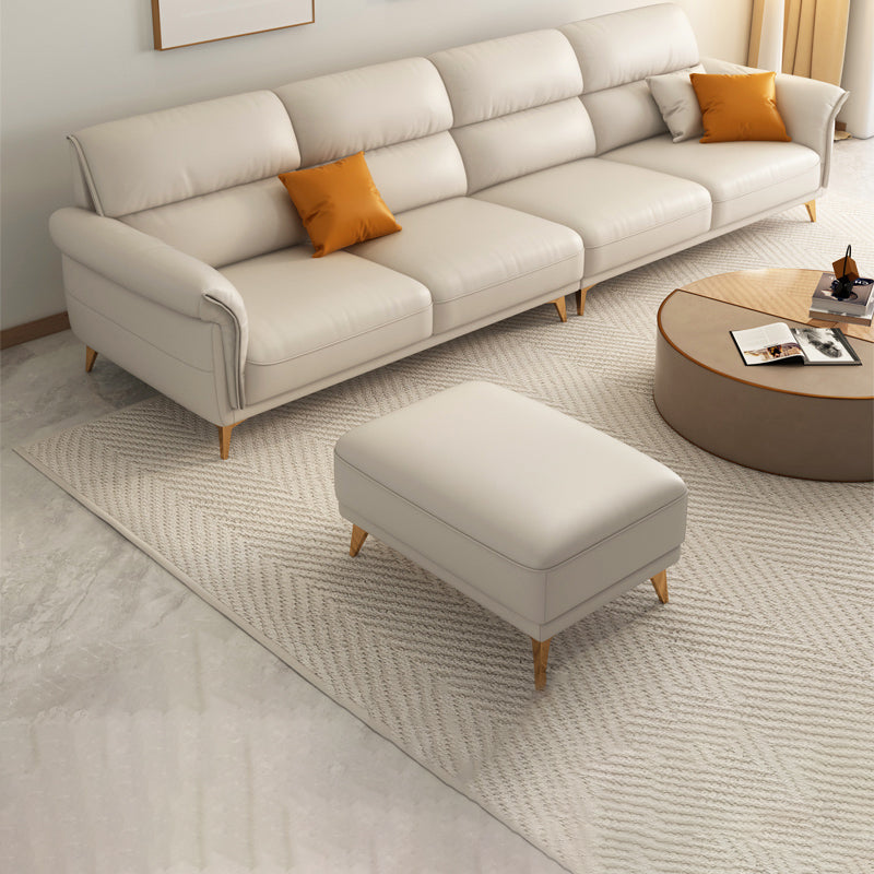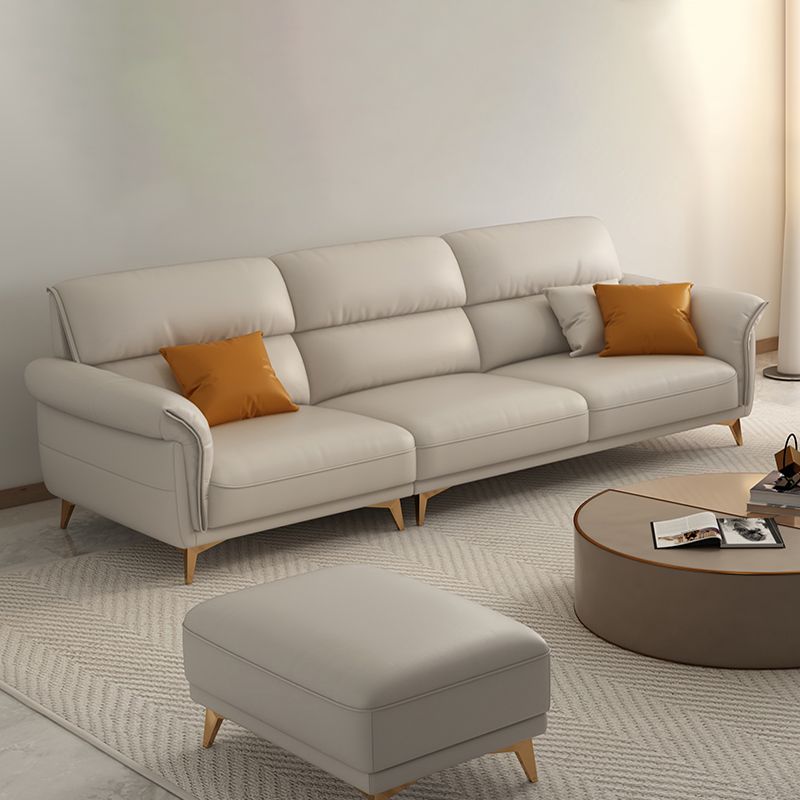 Genuine Leather Biscuit Back Sofa Modern Beige Flared Arm Cushions Sofa