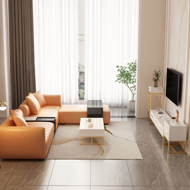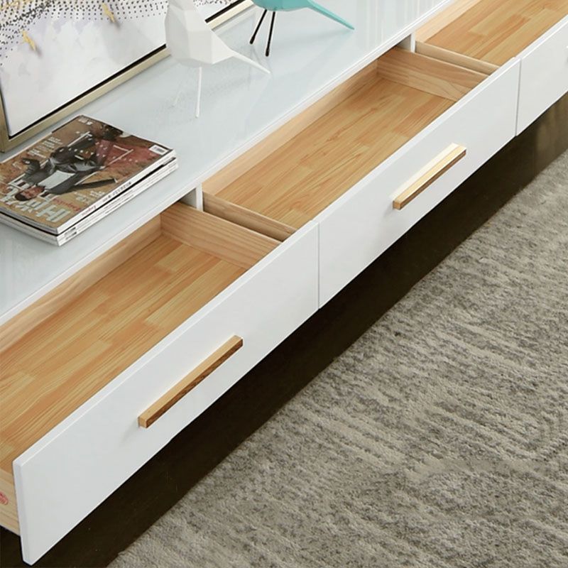 Glam Glass Top TV Stand in Black/White Steel Frame TV Console with Drawer