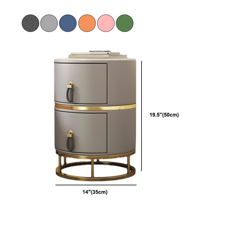 Glam Round Nightstand with 2 Drawers 20" Tall Stone Top Night Table
