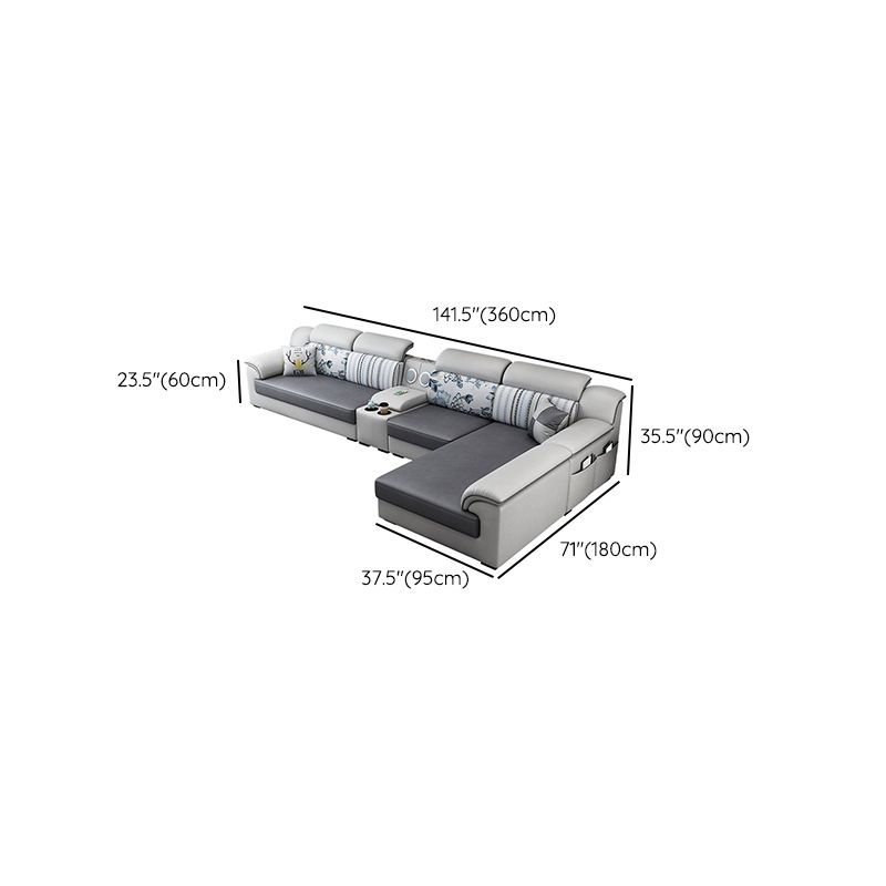 Gray Faux Leather Sectional L-shape Pillow Top Arm Sectional
