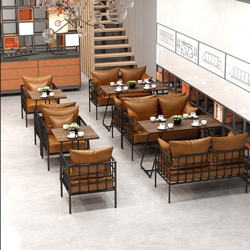 Industrial Tuxedo Arm Sofa with Pillows Seating Leather and Metal