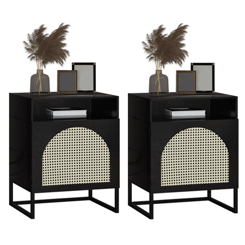 Modern Glass Nightstand Lower Shelf Bedside Cabinet with Door for Bedroom