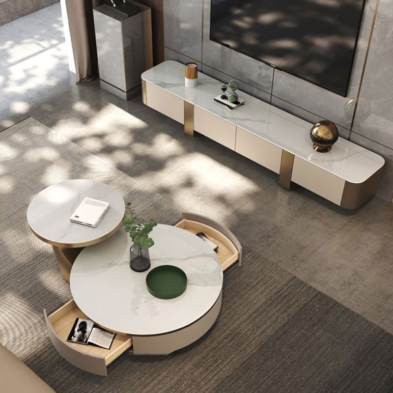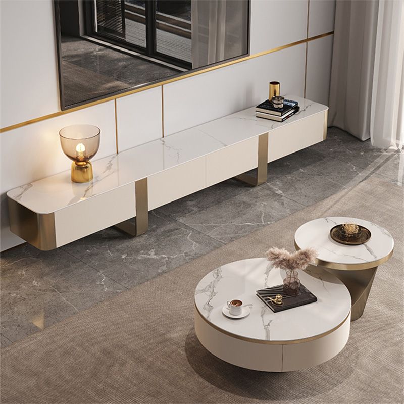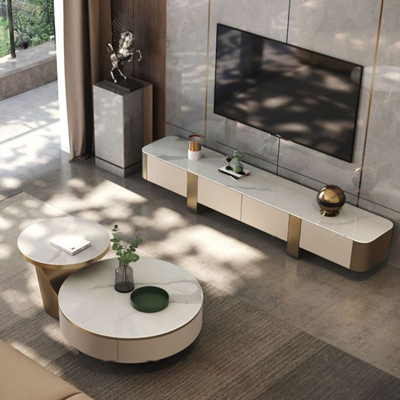 Modern Marble TV Stand Enclosed Storage TV Cabinet with Drawers , 16"W X 16"H