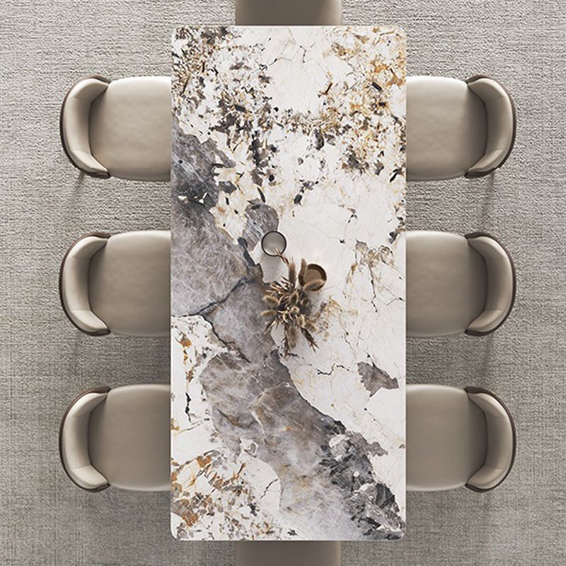 Modern Rectangle Double Pedestal Table Stainless Steel Base Dining Table