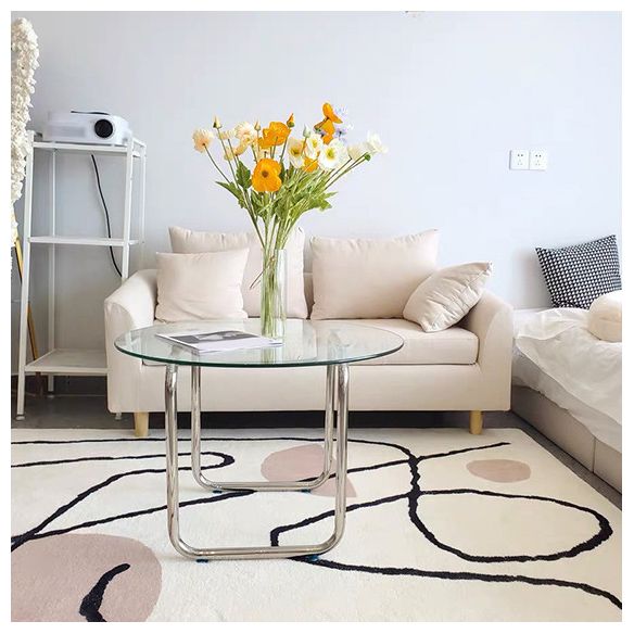 Modern Round Cocktail Table with Glass Top and Steel Sled Base
