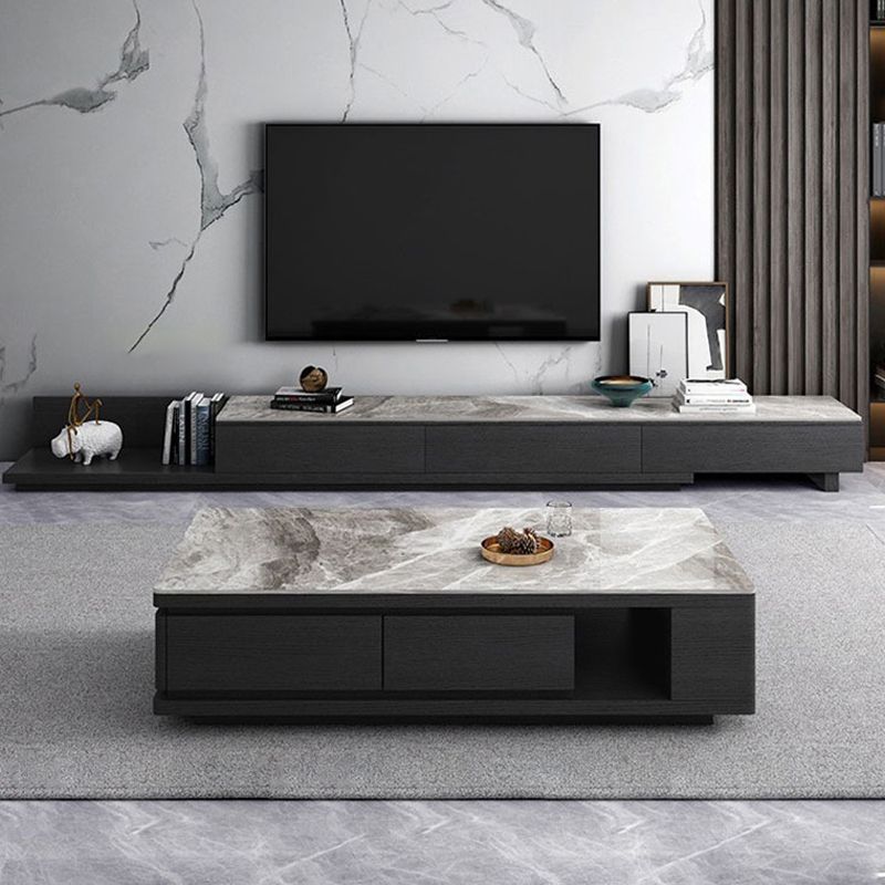 Modern Stone TV Stand Sliding TV Console with Drawers, 71"L X 16"W