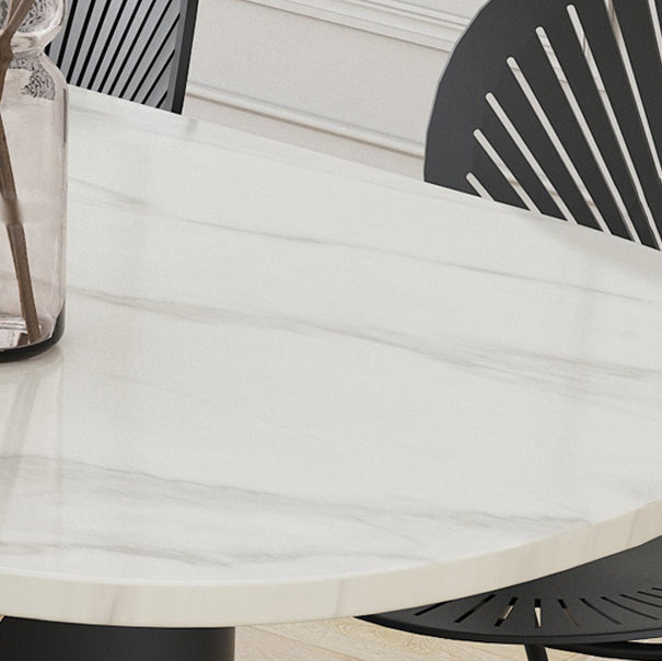 Modern Style Dining Table 55"L Double Pedestal Dining Table with Black Base