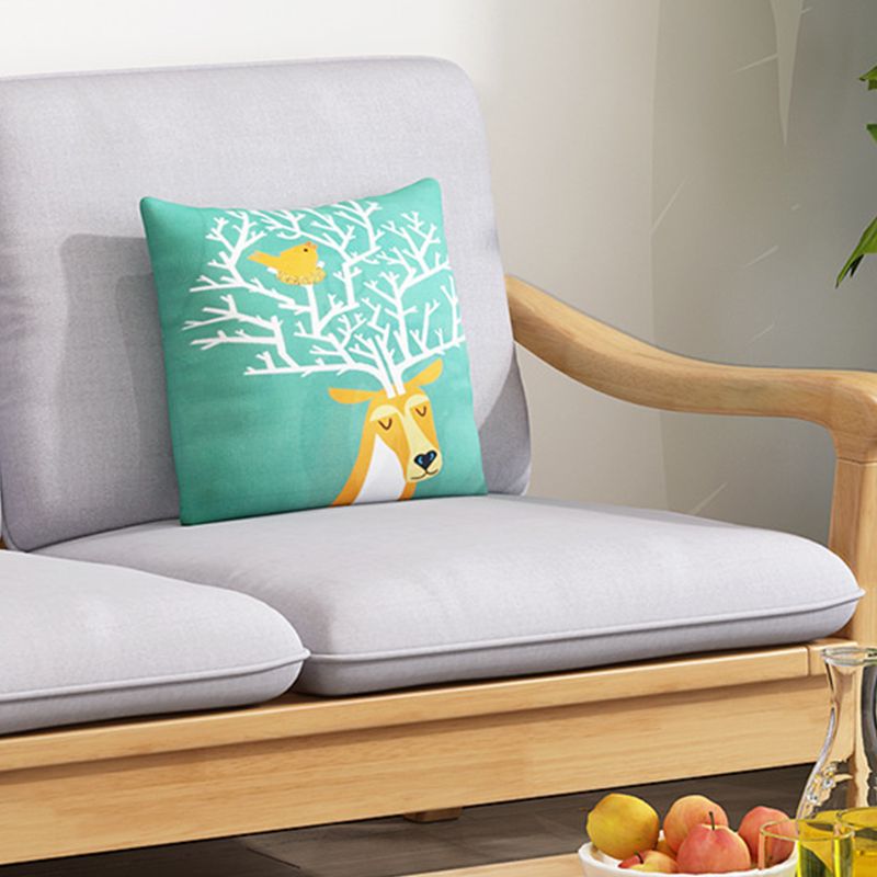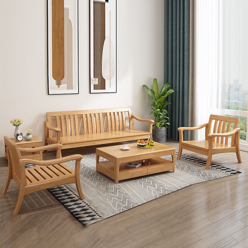 Pillow Back Wood Settee No Distressing Stationary Sofa for Living Room