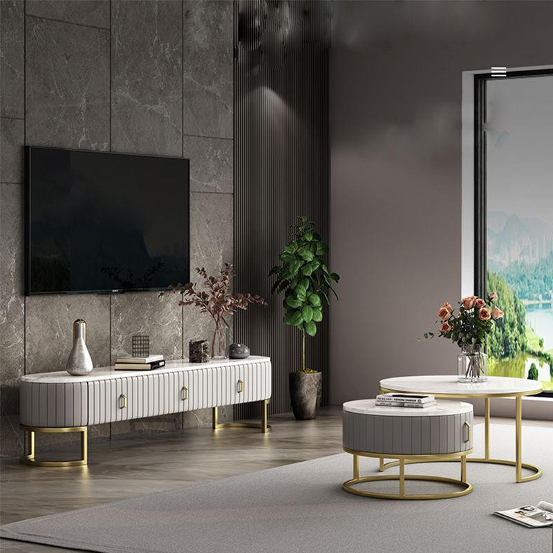 Scandinavian Style Stone TV Stand Enclosed Storage TV Console with Drawers