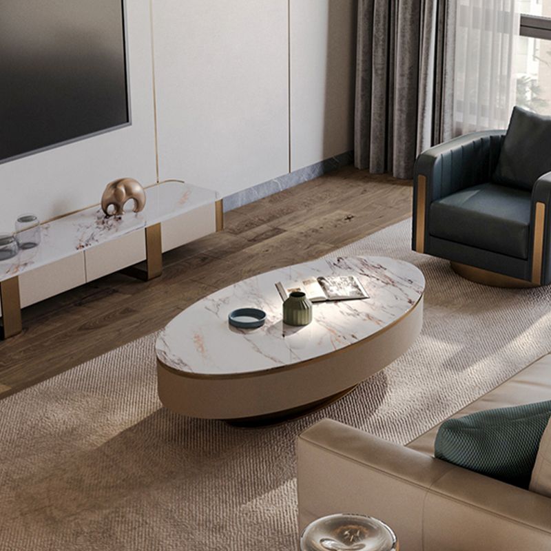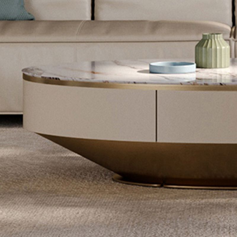 Slate Oval Coffee Table Glam Single Coffee Table with 2 Drawers