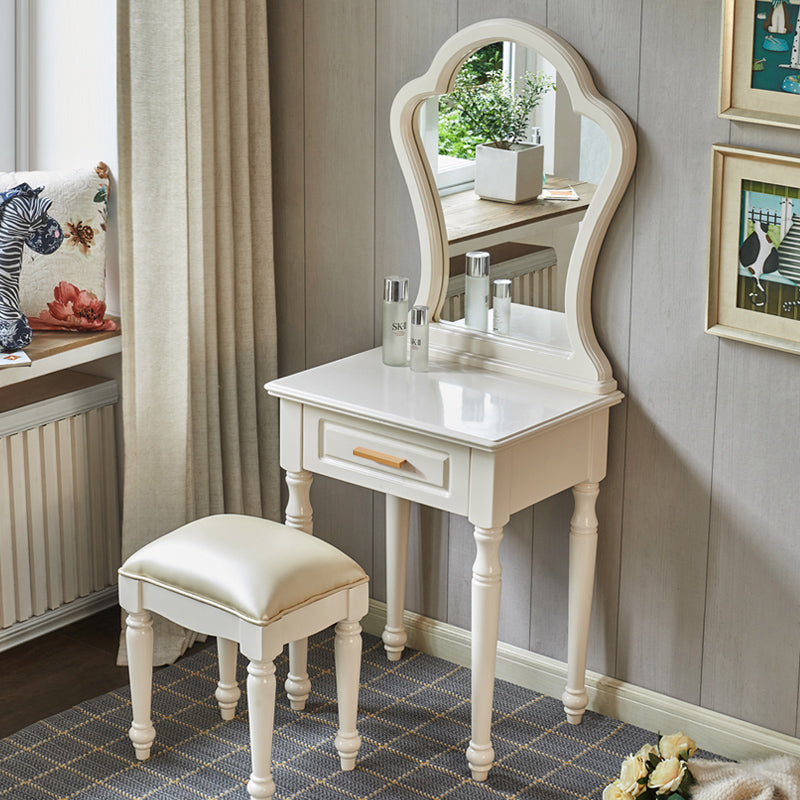 Solid Wood Makeup Vanity Desk Bedroom Dressing Table Stool Set with Drawer