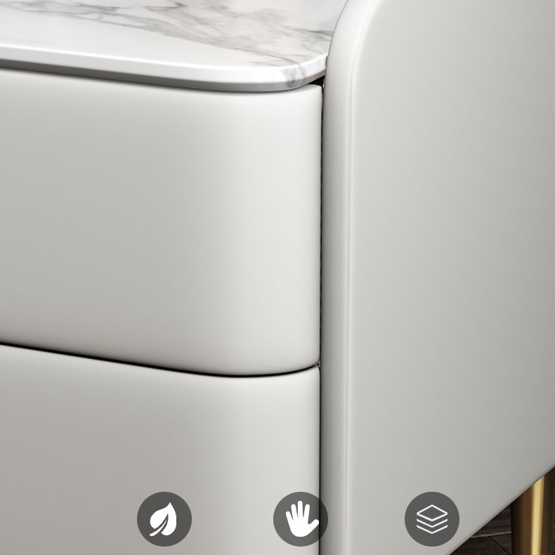 Stone Top Night Table with Drawers Leather Nightstand with 4 Legs