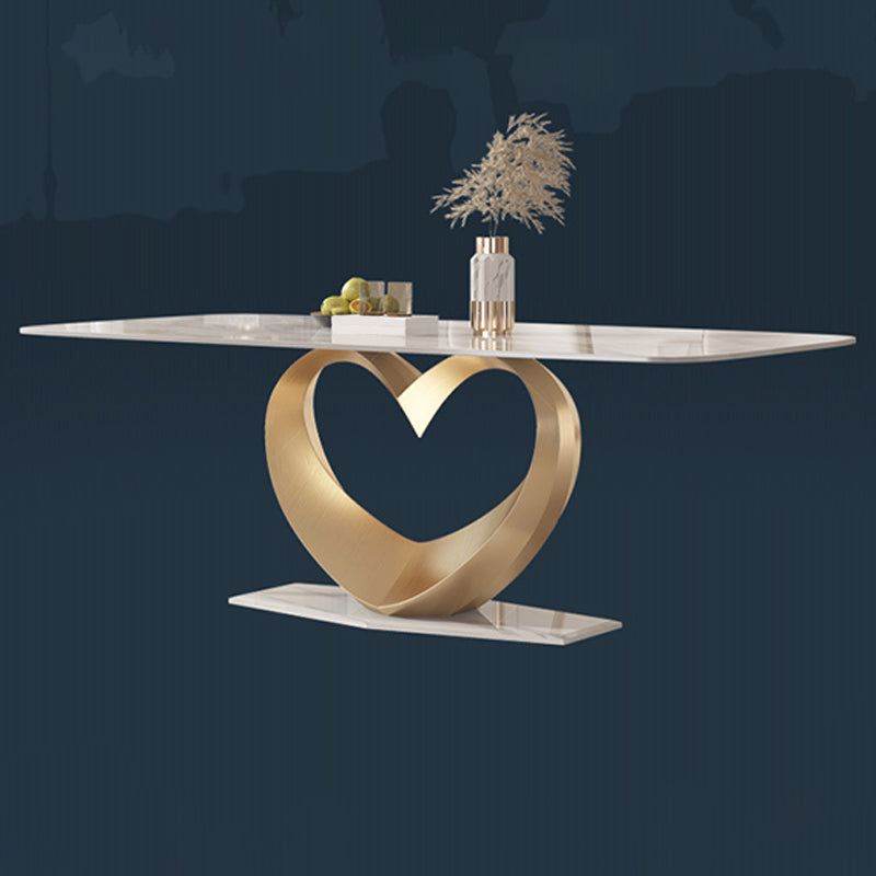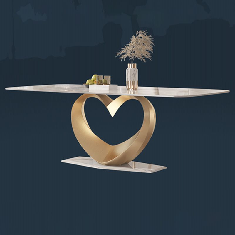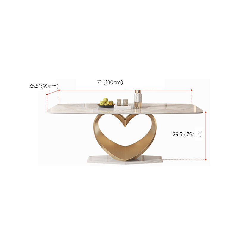 Traditional Luxury Dining Table Rectangle Pedestal Table with Steel Base