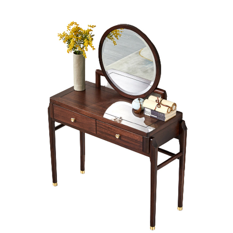 Traditions Solid Wood Vanity Set with Stool Set Brown Dresser with 2-Drawer and Mirror