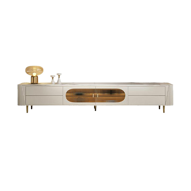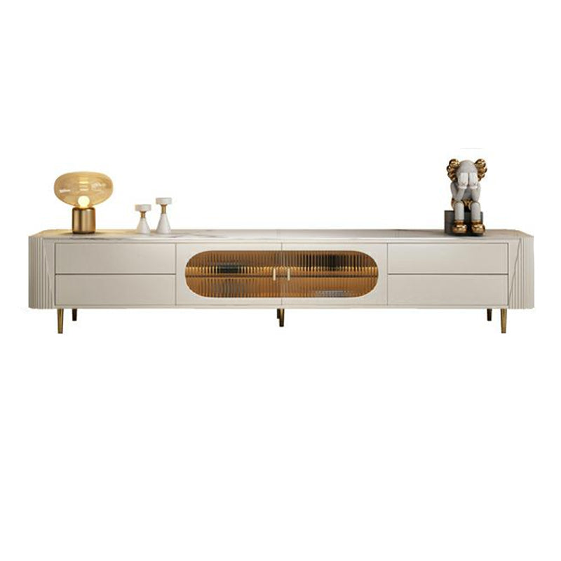 White Stone TV Stand Modern TV Media Stand with Legs for Living Room