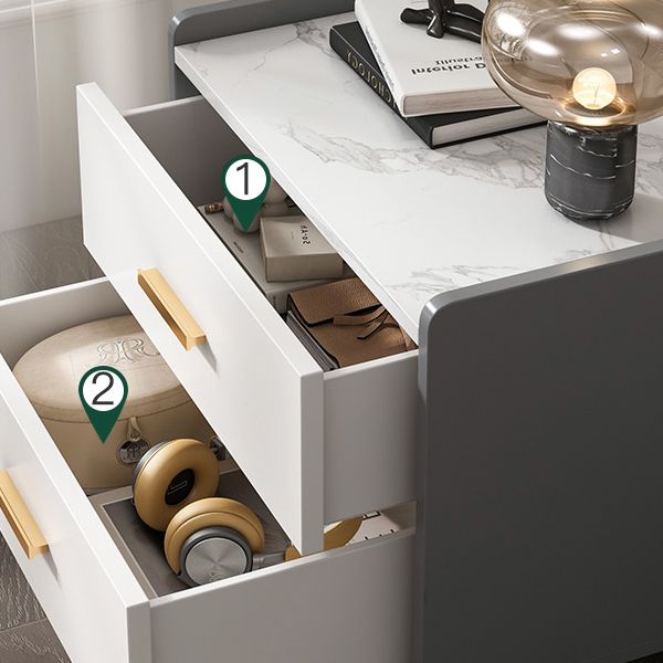 2 Drawers Night Table Contemporary Gray Nightstand With Legs ,19.3" Tall