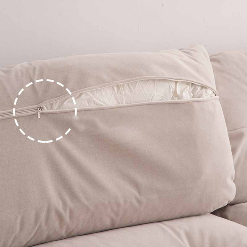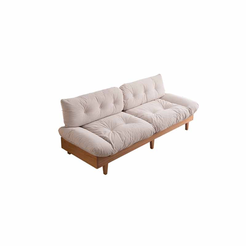 Contemporary Beige Sofa with Tufted Back and Flared Arm in Linen